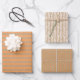 Summer Orange Lines On Faux Rustic Brown Kraft Wrapping Paper Sheet