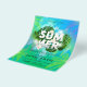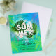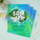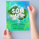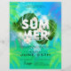 Summer Club Party Flyer Features Teal Green & Blue Palm Tree Background, Botanical Green Leaves, Ivory Florals & Geometric Shapes. Customise To Your Liking.
