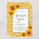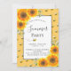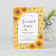 A yellow background decorated with rustic watercolored sunflowers and happy smiling bumble bees for your garden, backyard summer party. Personalise and add your party details, information.