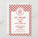 Fun, casual invitation featuring a red and white check pattern and all the details of your party. Great for a family reunion, summer wedding, picnic, BBQ, birthday, anniversary and more.