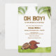 Sport baby shower theme, football baby shower theme, Summer baby shower theme, design feature watercolor American football and helmet on the glass field with typography 'Oh Boy! , A little all star is on the way" text in plam tree background. Perfect for your little slugger or your rookie baby theme, you can customise your own unique text and colour.