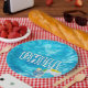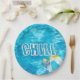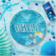 "chill" text in wavy font effect for swimming pool party with cocktail and splashing beach ball in turquoise pool water.