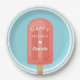 Designed to match our popsicle kids' birthday party invitations, these cute personalised paper plates feature a bright coral popsicle in the centre, with the words "Happy Birthday [Name]" in white retro lettering adorned with a heart.