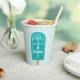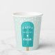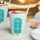Designed to match our popsicle kids' birthday party invitations, these cute personalised paper cups feature a bright teal popsicle with the words "Happy Birthday [Name]" in white retro lettering adorned with a heart.