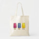 Created from an original watercolor illustration, this tote bag features a row pink, yellow, and blue frozen popsicles on sticks. Perfect for summertime!