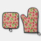 Summer Raspberry Garden Botanical Fruit Pattern Oven Mitt & Pot Holder Set