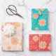 Summer Retro Floral Pattern Wrapping Paper Sheets. A mix and match of soft orange colour with turquoise colour and red colour, perfect gift wrappings for those who are fun and trendy. Cute, colourful and playful with the vintage pattern orange colour flowers. Designed by Dreaming Cocoon.