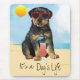 It’s a dog’s life! Be cool and celebrate the dog days of summer with this cute Rottweiler wearing sunglasses and relaxing with a drink.