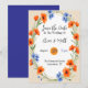 A delicate watercolor painting featuring vibrant orange and soft blue wildflowers. The floral arrangement showcases intricate brushstrokes, blending warm and cool tones for a harmonious, nature-inspired composition. Perfect for botanical art lovers, and Weddings.