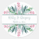 Summer Sage Wedding Stickers designed with soft pastel Pink and Sage Green floral accents. The text includes: the Bride and Groom's First Names and Wedding Date, on a white background, with Sage Green border. To personalise, simply insert the Names and Wedding Date into our easy template, replacing the sample text.