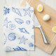 Summer Seashells Frame Beach Wedding Blue Tea Towel
