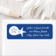 A blue return address label is decorated with a white sand dollar and starfish on the left and sample text on the right for customising to make it your own. Use these labels on the outside of your invitations or "Thank You" cards for an elegant touch, especially when combined with the other Summer Seashells in Blue cards, or swap to the standard address sized labels to pre-address the RSVP cards for your guests.