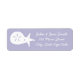 A lavender return address label is decorated with a white sand dollar and starfish on the left and sample text on the right for customising to make it your own. Use these labels on the outside of your invitations or "Thank You" cards for an elegant touch, especially when combined with the other Summer Seashells in Lavender cards, or swap to the standard address sized labels to pre-address the RSVP cards for your guests.