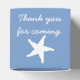 Give your guests, bridesmaids, groomsmen, or anyone else a special treat with these customisable favour boxes featuring a periwinkle blue background with a white sand dollar, seashell, and starfish on the front, back, and top of the box, respectively. Each of these sides also features some sample text that you can customise for your own summer or beach-themed wedding or event. Be sure to check out the other products in the Summer Seashells in Periwinkle set to create a truly coordinated look for your event.