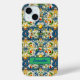 Summer, Sicilian Mediterranean oranges majolica blue monogram iPhone 15 Case. Chic floral botanical citrus garden pattern inspired by the summer bright italian themed art of majolica. Beautiful Sicilian ceramic tiles in pink yellow and blue. A fun style bright design for home decor, clothes, mobile and Ipad cases, invitations and much more. You can change all text colours and fonts, click to customise further underneath the text customisation area this will take you into the design tool. A unique gift for birthdays, holidays and any special occasion. Whether for valentines day, Christmas or as a gift in general it makes a great gift idea