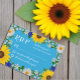 Summer blue sky featuring golden yellow sunflowers, daisies, and assorted wildflowers with botanical greenery