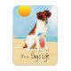 It’s a dog’s life! Be cool and celebrate the dog days of summer with this cute Smooth Fox Terrier puppy wearing sunglasses and relaxing with a drink.