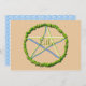 A sunshine yellow and sky blue pentacle is encircled by a stand of summer trees in this simple Litha design, which is one of my attempts to create pentacles depicting each of the 8 Wiccan holidays (sabbets)