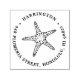 Coastal chic return address rubber stamp features your name and return address encircling a summery starfish illustration.