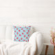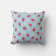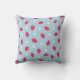 Large strawberries on blue create a bold accent pillow with a fresh, lively look. A bright addition to casual and summer inspired spaces.