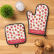 Summer strawberry pattern oven mitt and pot holder set. Customise with your own name or choice of text. Matching items available. Original art from artists own illustrations. Please use the message me button below for help with further customisation and special requests. © Zoe Chapman Design