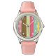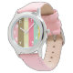 A vibrant and colourful striped design featuring a combination of warm and cool pastel shades. The stripes include shades of pink, brown, pale yellow, bright pink, mint green, and golden yellow, evoking a summer-inspired aesthetic. Perfect for design inspiration, creative projects, or mood boards.