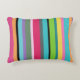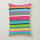 Vibrant stripes in shades of pink, red, yellow, green, purple, black, orange, turquoise, and more adorn this accent pillow.