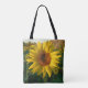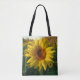 Bright summer sunflower shines on printed tote bag- great idea for summer day trips, beach, or casual shopping trips!