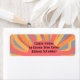 These return address labels have a nature design of a sunrise made of curvy lines in red, yellow, and orange, a sun, and the sky.