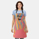 This apron has a nature design of a sunrise made of curvy lines in red, yellow, and orange, a sun, and the sky.