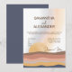 This summer sunset coastal beach wedding invitation is perfect for a simple seaside destination wedding. The design feautures an aesthetic boho tropical beach with customisable text elements. Create your own sunset theme wedding invitation by simply personalise this template online.