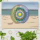 This beach themed mandala features layers of seashells, sailboats, sand, sun, sea, and palm trees inside of a transparent beach ball to bring to mind the fun that comes with summer. Two different versions of this design have been provided so that you can choose which fits your style and folding preference. Just click the customise button to rearrange the images if you prefer a quarter fold display style over a half fold.