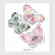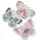 A pretty design of 3 butterflies in shades of pinks and greens with black accents