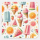This vibrant design bursts with cheerful popsicles, creamy ice cream cones, juicy watermelon slices, and zesty orange wheels—all scattered across a pastel dreamscape. Blending nostalgic summer treats with a modern, candy-colored palette.