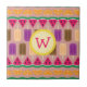 Rows of brightly coloured orange slices, zigzag-like watermelon wedges, and popsicles in grape, fudge, and orange cream shades sit on a pleasant coral background, creating a fun and cute pattern perfect for those hot summer days. This tile can be framed to create a trivet or placed inside a wooden gift box lid. Tiles without a frame will also fit inside the large gift box to create a matching set. Customise the monogram with your initial to make it your own.
