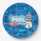 Summer Swimming Pool Party Tropical Birthday Blue Paper Plate