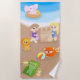 A beach towel for kids at the beach featuring characters from the books of "The Underground Toy Society"!