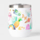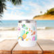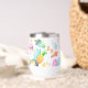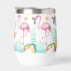 Here's a fun thermal wine, water, or coffee tumbler that can take you from home chores to the beach or anywhere else in style! It features a pattern of tropical images, including lemons and grapefruit slices, palm leaves, frosty ice cream bars, a toucan bird, and, of course, a pink flamingo. The pattern is placed on a white background, with your two letter monogram on two sides.