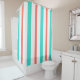 Summer Turquoise Coral White Vertical Stripes Shower Curtain