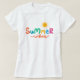 Summer vibes and sunshine design women's t-shirt that's perfect to help you get into that beautiful vacation mode. This colourful design features vibrant colour letters and an illustration of a yellow sun and vibes in stylish calligraphy.