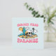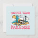 This greeting card showcases a skull in the sand and the phrase "Summer Vibes Paradise." It's ideal for capturing surfer style, beach vibes, and summer adventures.