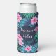 Summer Vibes Pink and Palm Leaf Tropical Floral Seltzer Can Cooler