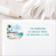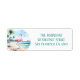 Summer vibes return address labels featuring a watercolor flamingo on the beach. Customisable.