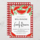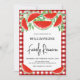 Invite your family to their gathering with this summer family reunion invitation. It is decorated with watercolor watermelons, foliage, stylish script typography, with a red gingham background.