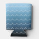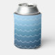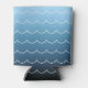Keep your drinks cool this summer with a stylish can cooler featuring a pattern of white curving waves on a blue gradient that goes from light blue to navy blue.