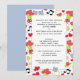 Whimsical casual wedding invitations featuring summer lovebirds, red roses, musical notes and hearts.