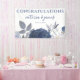 Summer Blue Grey Floral Wedding Banner for your Reception Accessories. Designed with watercolor flowers in shades of blue and soft grey, on a white background. The text includes: CONGRATULATIONS!, The Bride and Groom's First Names and Wedding Date. To personalise, simply insert your details into our easy template, replacing the sample text. Be sure to view the entire Summer Blue Grey Floral Wedding Collection for matching cards and accessories.