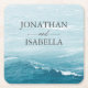 Summer wedding by the blue wavy sea ombre ocean square paper coaster