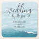 Summer wedding by the blue wavy sea ombre ocean square paper coaster