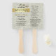 The fans are very pretty and easy to assemble. We utilized the original template and just inserted the names of our wedding party. After the product arrived we noted they read,”Made of Honor” rather than “Maid of Honor”. Upon re-checking the website we noticed the typo is in the original template and was not a mistake on our end. It is too late to return because our wedding is in just a few days but if we had time we would certainly request an exchange. See review above regarding typo.
